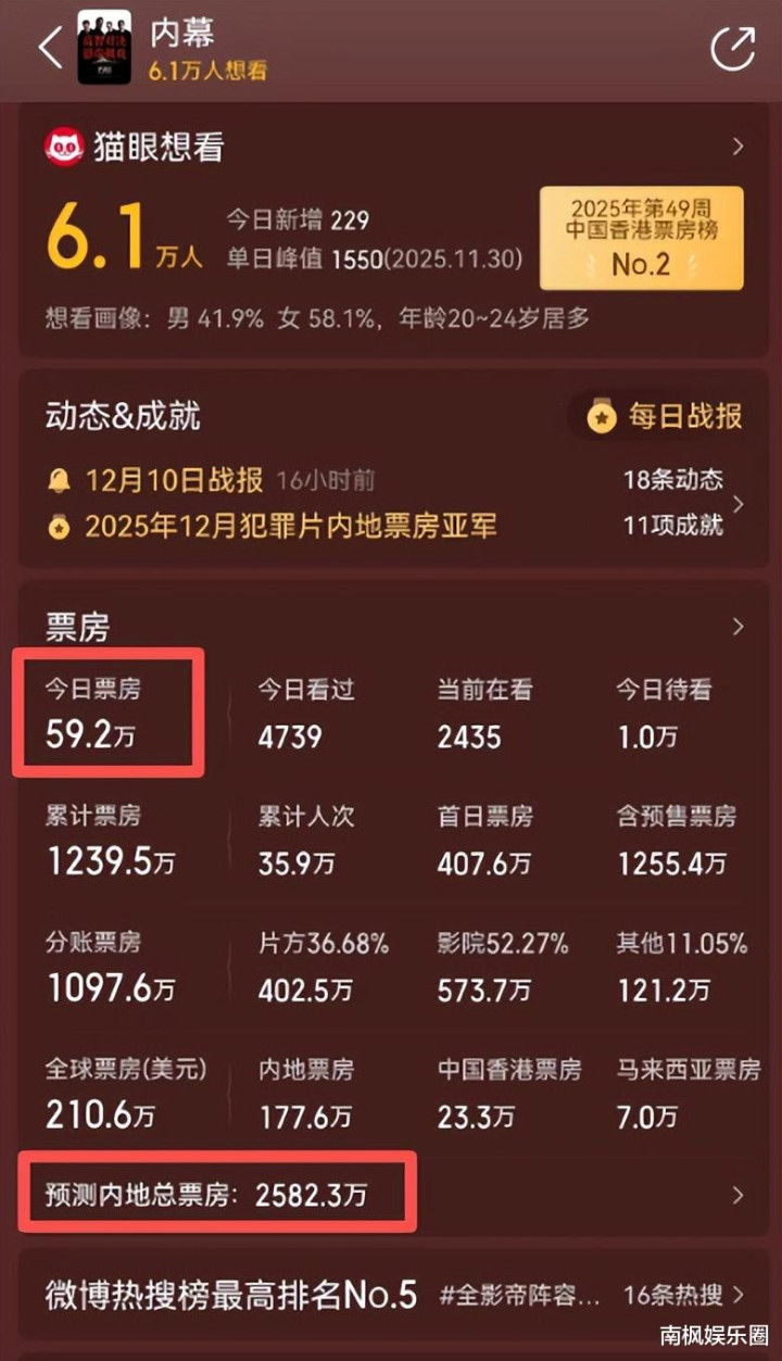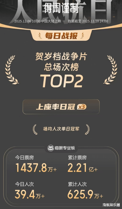 连续半个月都是票房日冠,细扒数据就只有两千万打底,观影人次连百万都没达到。