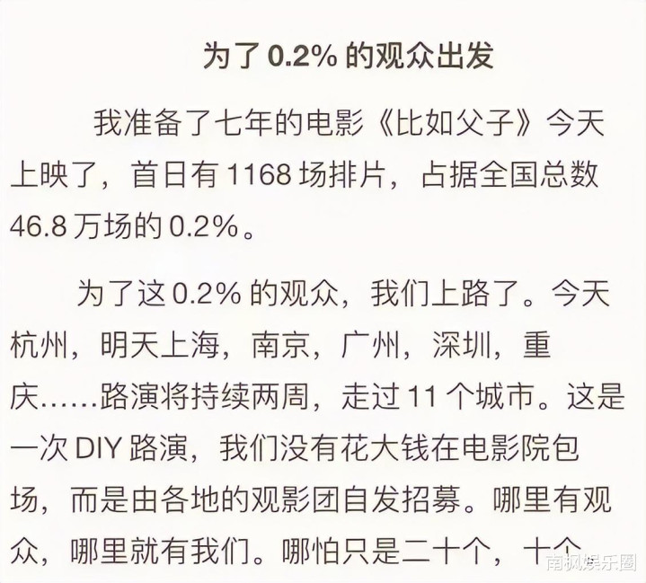 看得出,业内还是非常互帮互助的,《比如父子》导演的态度也十分诚恳。